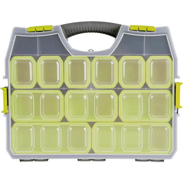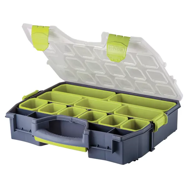 **Органайзер Master-comfort** позволит навести порядок в кладовой комнате и рассортирует по местам крепежные, монтажные элементы и скобяные изделия. Благодаря съемным разделителям можно установить перегородки между отсеками для хранения шайб, дюбелей, гвоздей, анкеров, винтов, шурупов, болтов, гаек, саморезов. Аксессуар имеет ручку для переноски. Изготовлен из серого пластика. ### Особенности: - размеры: 365 x 92 x 462 мм; - объём — 5,85 л; - вес — 1,562 кг. **БЕРЕЖНО К ЛЮДЯМ, БЕРЕЖНО К ПРИРОДЕ** - Товар содержит не менее 15% вторичного сырья в составе. Выбирая продукцию с переработанными материалами, вы помогаете сокращать количество отходов на полигонах и поддерживаете ответственное потребление.