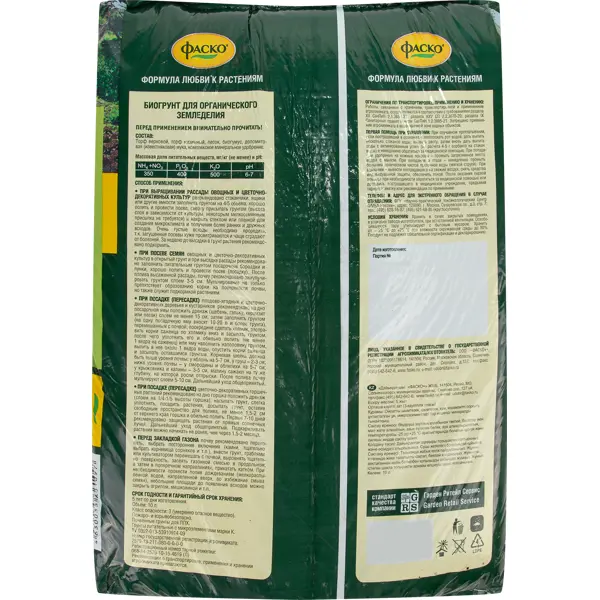 **Грунт Фаско с биогумусом 10л** - полностью готовый к применению универсальный питательный грунт, содержащий биогумус и оптимальный набор питательных веществ в легкодоступной форме, необходимых для полноценного роста и развития всех видов растений.