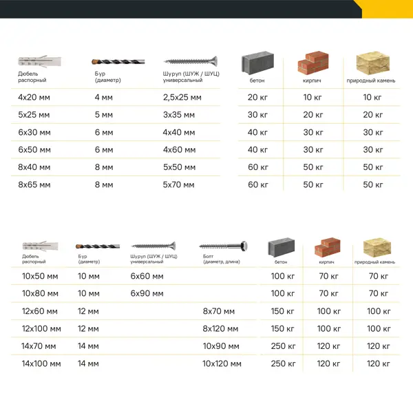 **Нейлоновый дюбель NAT 10** изготовлен из полиамида, предназначен для установки в полнотелые материалы: бетон, кирпич и рассчитан на средние и большие нагрузки. Нейлоновый дюбель NAT может использоваться с шурупами по дереву, ДСП, шурупами с двойной резьбой, регулируемыми винтами для оконных и дверных коробок, другими распорными винтами. Диапазон температур эксплуатации составляет от -40 °C до +80 °C. ### Особенности и преимущества: - геометрия дюбеля гарантирует хорошее сцепление с пористыми материалами; - ребристая внешняя поверхность увеличивает трение и повышает несущую способность в твердых основаниях; - небольшая перемычка в верхней части дюбеля препятствует преждевременному раскрытию и сгибанию при монтаже - распорные элементы удерживают дюбель в отверстии при монтаже в потолок, предотвращая проворачивание; - форма линии раскрытия дюбеля центрует шуруп при монтаже, что ведет к максимально эффективной установке дюбеля; - все дюбели имеют маркировку размера. ### Условия эксплуа