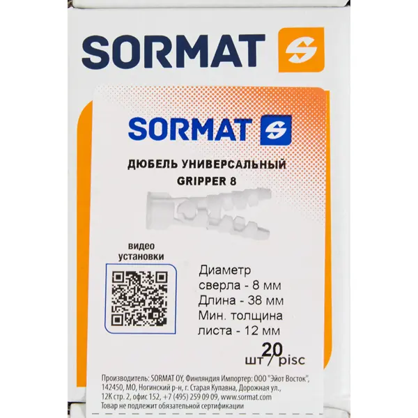 Дюбель универсальный Sormat Gripper 8x38 мм 20 шт.
