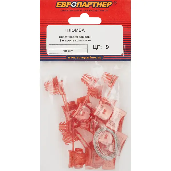 **Комплект трос и пломба с защелкой** имеет защитный элемент с эффектом линзы обеспечивает дополнительную защиту и абсолютный визуальный контроль. Монолитная конструкция не позволяет производить замену отдельных частей пломбы. Специальная вставка-замок оснащена 6-ти замыкающими фиксаторами, что обеспечивает невозможность извлечения проволоки после установки пломбы. Дублирование номера на корпусе повышает надежность пломбы. Пломба нужна для повышенного уровня защиты объекта: в отличие от более простых пломб, снабжена металлической проволокой и более устойчива к температурным перепадам. В комплект входят 10 пломб, проволока цельно металическая витая 0,5 мм - 200 см. ### Особенности: - Размер пломбы: 55х42х7 - М