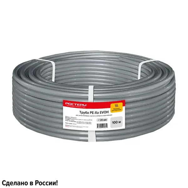 **Труба PЕ-Хa диаметром 20 мм** изготовлена из материала высокой прочности - сшитого полиэтилена толщиной стенки 2.8 мм с кислородозащитным слоем EVOH. Трубы РОСТерм PЕ-Ха EVOH - это универсальные трехслойные трубы, которые используются как в радиаторном отоплении, так и в системах горячего и холодного водоснабжения. Температура эксплуатации труб PE-Xa составляет от +5 до + 95 °C (при транспортируемой жидкости - воде), номинальное давление 16 бар, 5 класс эксплуатации. ### **Преимущества:** - Наличие кислородозащитного слоя EVOH обеспечивает защиту от проникновения кислорода в теплоноситель. - Высокая эластичность, устойчивость к появлению трещин и изломов, способность амортизировать гидроудары и восстанавливать свою форму после механических воздействий. - Устойчивость к химическому воздействию растворителей и масел, трубы не подвержены зарастанию, коррозии и старению. - Не выделяют токсичные вещества, не меняют вкусовые качества воды, цвет, запах, не вредят здоровью. - Простота и