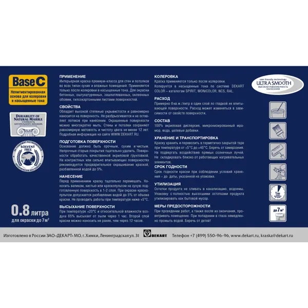 **Суперстойкая интерьерная краска Husky Super Paint Interior** — матовая 100 % акриловая краска премиум-класса для стен и потолков во всех типах сухих и влажных помещений, включая ванные комнаты. Краска обеспечивает исключительную легкость нанесения в сочетании с практически идеальным качеством и долговечностью покрытия. Окрашенные поверхности сохраняют равномерную матовость и чистоту цвета не менее 12 лет. Страна производства — Россия. ### Преимущества краски - Практически не имеет запаха. - Сертифицирована для детских и медицинских учреждений - Не образует потеков, легко наносится. - Обладает высокой степенью укрывистости. - Компьютерная колеровка в темные и насыщенные оттенки. - Окрашенные поверхности можно многократно мыть с бытовыми моющими средствами (1 класс влажного истирания). - Стены и потолки сохраняют равномерную матовость и чистоту цвета не менее 12 лет. ### Расход 8 м²/литр в один слой по гладкой невпитывающей поверхности. Расход может изменяться в зависимости от свойс