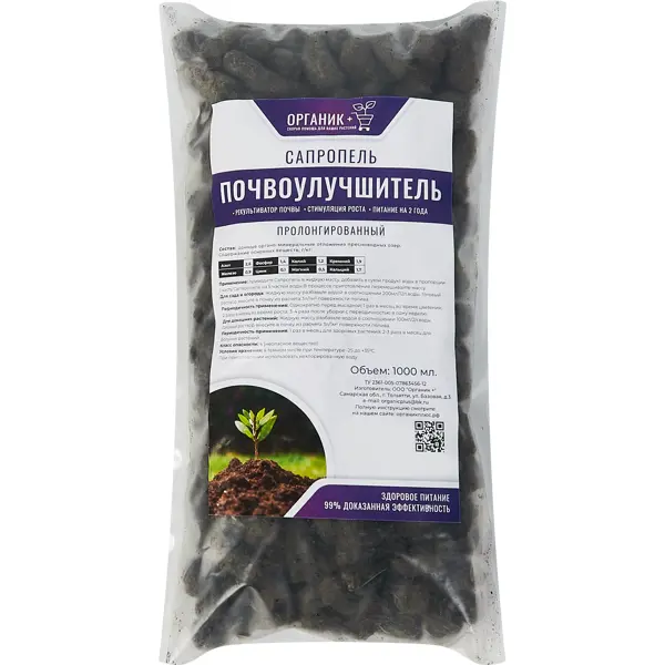 **Сапропель Органик почвоулучшитель** — натуральный компонент, содержащий в составе разнообразные полезные вещества, витамины. Применяется для улучшения качественных характеристик почвы. Может вноситься в грунт как в сухом виде, так и как раствор. Подходит для использования в качестве дренажа. ### Особенности: