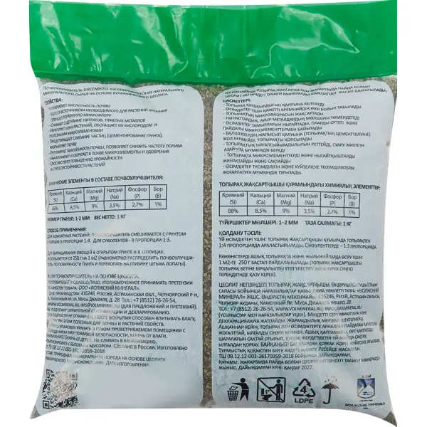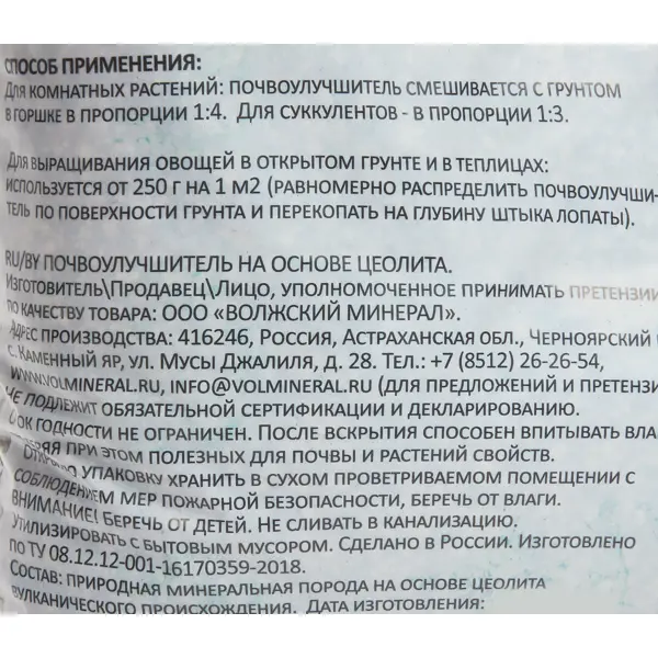**Почвоулучшитель цеолитовый** представляет собой источник кремния. Способствует увеличению урожайности, стимулирует иммунитет растений и повышает их стрессоустойчивость. Обеспечивает снижение кислотности грунта, концентрацию нитратов и тяжелых металлов. Обогащает почву кислородом. Позволяет снизить частоту полива. Подходит для использования как для комнатных растений, так и в открытом или защищенном грунте. ### Особенности: - инструкция по применению размещена на обороте упаковки; - вес — 1 кг.