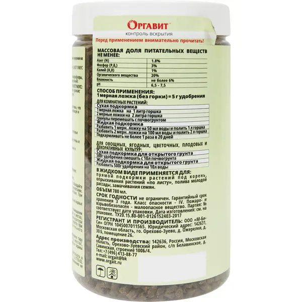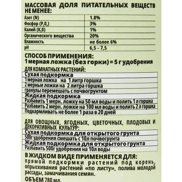 **Удобрение Оргавит биогумус 780мл** Биогумус - это биологически активное натуральное органическое удобрение. Вырабатывается червями из органического сырья-конского и коровьего. Благодаря биогумусу растения начинают развиваться быстрее. Биогумус благотворно влияет на почву, восстанавливается плодородие земли. Делает иммунитет растений крепче, сокращает вегетационный период . Абсолютно безвреден. Применяется практически круглый год, начиная с ранней весны. Используется в сухом и жидком виде. Применяется для всех видов подкормок, оказывает сильнейшеее положительное воздействие на растения.