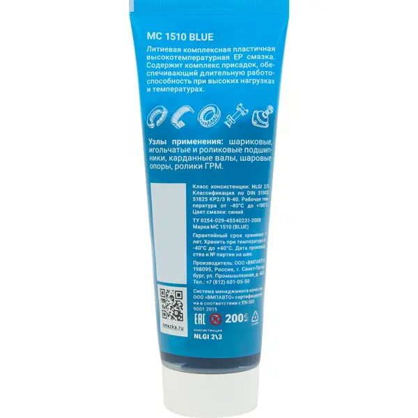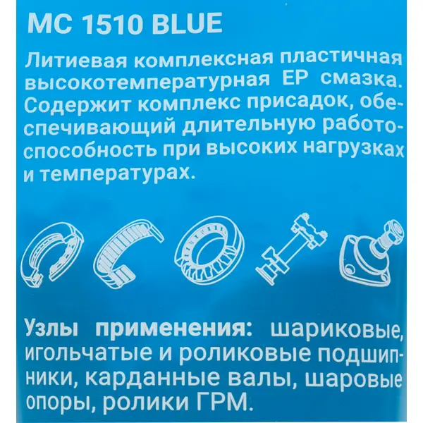 Высокотемпературная пластичная смазка. Обладает высокой окислительной стабильностью и защищает узлы трения при резких скачках температур. Уникальная температура каплепадения 350° С , что на 100 градусов выше чем у импортных аналогов. Обеспечивает безотказную работу подшипников даже при перегреве. Экономит деньги, предотвращая повторные замены детали (работает более 300 тыс. км.) Выдерживает высокие нагрузки: экстренное торможение, жаркий климат, разбитые дороги. При торможении груженой фуры энергия движения переходит в тепло. Тормозные диски и подшипники разогреваются до сотен градусов. Важно чтобы в это время смазка надежно удерживалась в узле и не вытекала. Смазка Blue прошла испытания в поистине адских условиях. При 180⁰С и нагрузке 50 000 кг/см2 подшипник проработал 9 млн. циклов, что на практике соответствует более 500 000 км. Одним из основных преимуществ является уникальная температура каплепадения 350°С , что на 100 градусов выше чем у импортных аналогов. ### Особенности: -