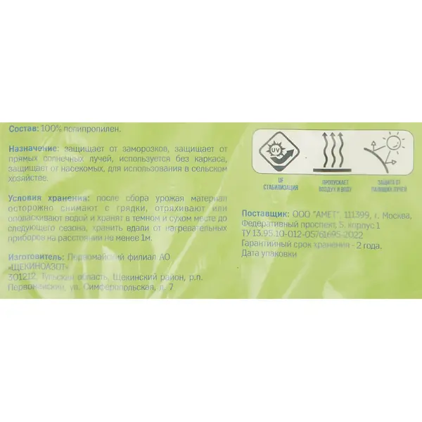 | Тип продукта | Спанбонд для растений |