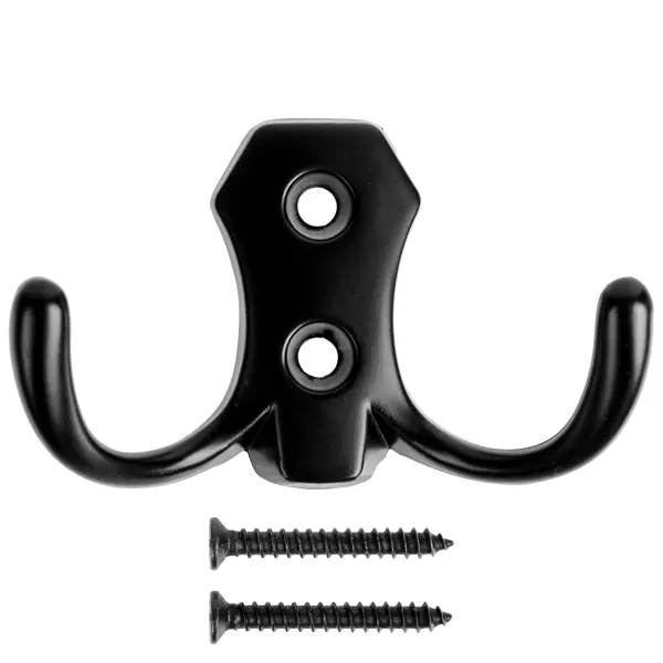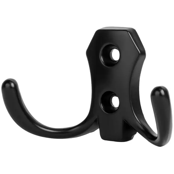 **Крючок-вешалка** предназначен для установки в помещениях бытового, хозяйственного назначения, гардеробных. Не боится негативного воздействия влаги, поэтому монтируется в ванных комнатах, душевых и т. д. ### Особенности: - материал изготовления — ЦАМ; - размеры: 75 х 45 мм; - цвет — черный.