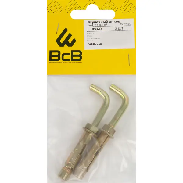 Анкер втулочный 8x40 мм, Г-образный, 2 шт.