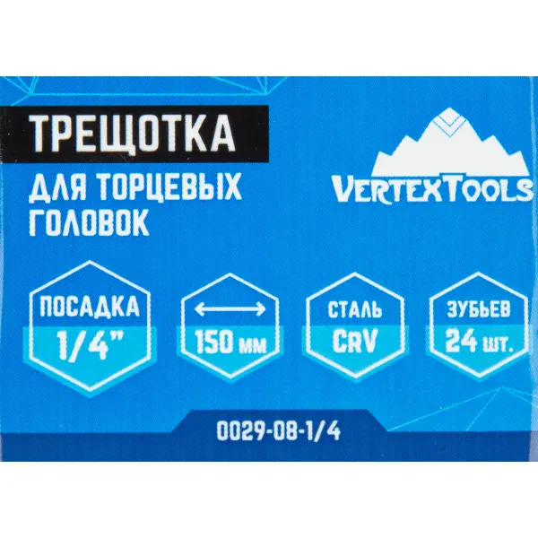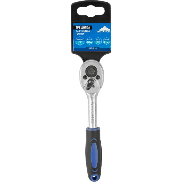 Ключ трещотка Vertextools 0029-08-1/4 1/4 дюйма 150 мм 24 зубца
