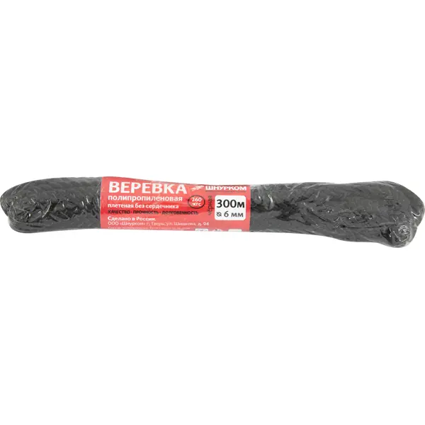 Веревка полипропилен без сердечника 6 мм цвет черный, на отрез