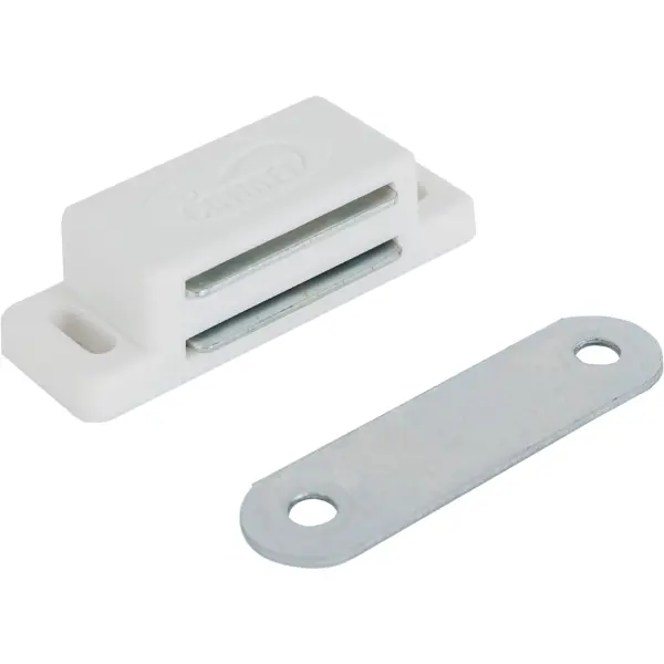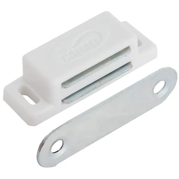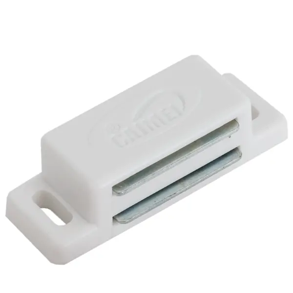 **Защелка магнитная Jet** применяется для фиксации межкомнатных дверей в закрытом положении. Изделие выполнено из белого пластика, устойчивого к незначительным механическим повреждениям, царапинам, сколам, перепадам температуры, воздействию влаги. Его конструкция состоит из ответной планки и магнита. С таким механизмом двери закрываются максимально бесшумно. ### Преимущества: