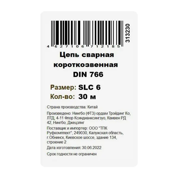 **Цепь оцинкованная короткозвенная DIN 766** используется в строительных и хозяйственных работах для подвешивания тяжелых предметов, для крепления грузов, в качестве растяжки, в декоративных целях. От цепей длиннозвенного типа изделие отличается более высокой прочностью. При этом цепь не рассчитана на ударные нагрузки и не подходит для подъема грузов. Звенья цепи изготовлены из стальных прутков диаметром 6 мм сварным способом. Цинковое покрытие защищает металл от коррозии — изделие можно использовать на улице. Цепь выдерживает рабочую нагрузку до 450 кг, разрывную — до 1400 кг.