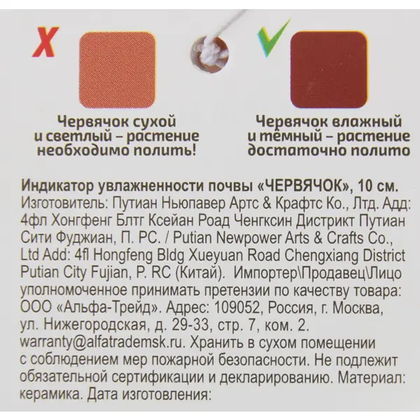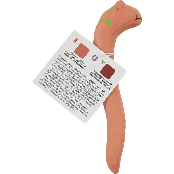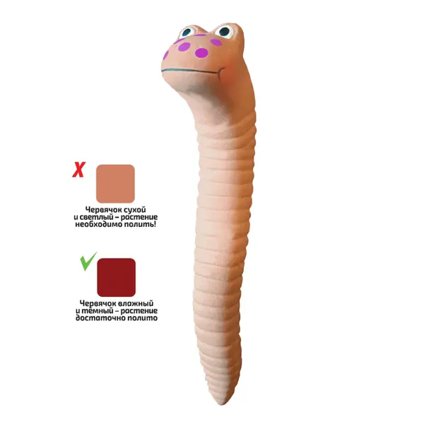 **Индикатор влажности почвы Червячок керамика бежевый** Назначение керамического терракотового червячка - гарантировать, что растения и цветы будут вовремя политы. Его голова высовывается из почвы рядом с растениями и, при хорошем поливе, приобретает более темный оттенок. Как только почва начинает высыхать, червячок меняет оттенок на более светлый, давая понять, что пришло время полива.