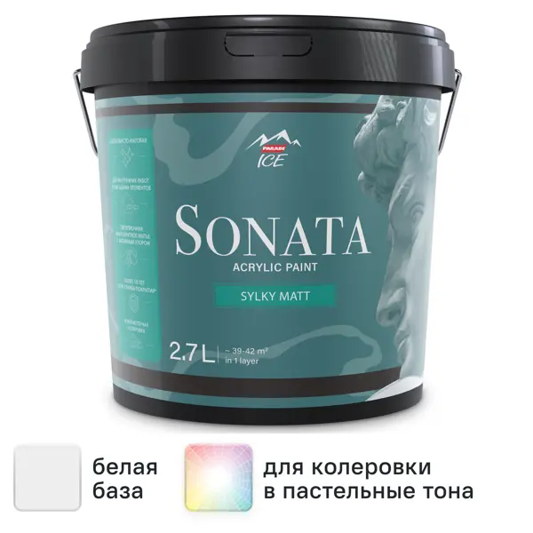 Краска для стен и потолков Parade Sonata Silky Matt моющаяся шелковисто-матовая цвет белый база А 2.7 л
