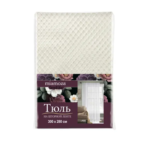 **Тюль Leopar геометрия** предназначен для декорирования окна. Используется для рассеивания солнечных лучей и помогает скрыть комнату от посторонних любопытных глаз. Пришитая в верхней части шторная лента позволяет быстро подвесить тюль на карниз, сформировать мягкие элегантные складки. Полностью готова к эксплуатации. Может сочетаться с любыми шторами. ### Особенности: - цвет — молочный; - размеры — 300 x 280 см.