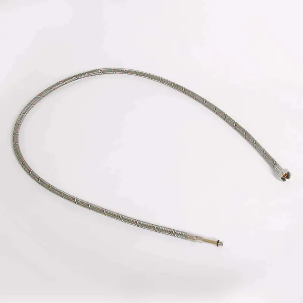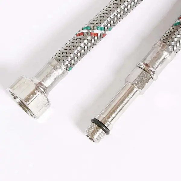 **Гибкий шланг для ванной и кухни** с одной стороны оснащен наружной, с другой — внутренней резьбой. Предназначен для подключения бытовых приборов к системам горячего и холодного водоснабжения. Внутренняя часть элемента изготовлена из плотного материала на основе каучука. Наружная оплетка — из металлических нитей. Для соединения не требуется особых навыков. ### Особенности: - длина — 150 мм; - резьба на выходе — 10 х 15 мм; - резьба на входе — М 10 х 1-L 50 мм; - резьба на впуске — 1/2.