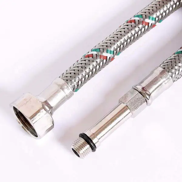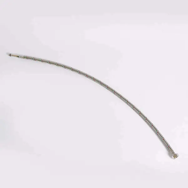 **Гибкий шланг для ванной и кухни** с одной стороны оснащен наружной, с другой — внутренней резьбой. Предназначен для подключения бытовых приборов к системам горячего и холодного водоснабжения. Внутренняя часть элемента изготовлена из плотного материала на основе каучука. Наружная оплетка — из металлических нитей. Для соединения не требуется особых навыков. ### Особенности: - длина — 80 мм; - резьба на выходе — 10 х 15 мм; - резьба на входе — М 10 х 1-L 50 мм; - резьба на впуске — 1/2.