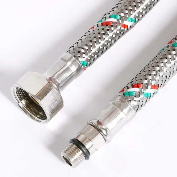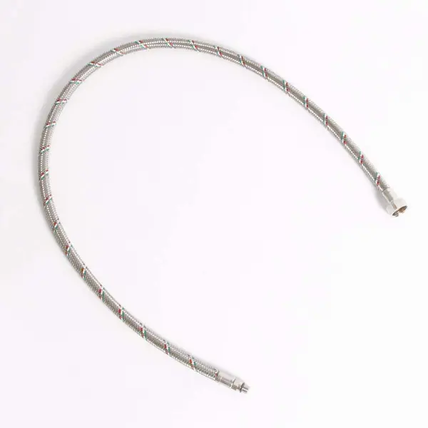 **Гибкий шланг для ванной и кухни** с одной стороны оснащен наружной, с другой — внутренней резьбой. Предназначен для подключения бытовых приборов к системам горячего и холодного водоснабжения. Внутренняя часть элемента изготовлена из плотного материала на основе каучука. Наружная оплетка — из металлических нитей. Для соединения не требуется особых навыков. ### Особенности: - длина — 100 мм; - резьба на выходе — 10 х 15 мм; - резьба на входе — М 10 х 1-L 50 мм; - резьба на впуске — 1/2.