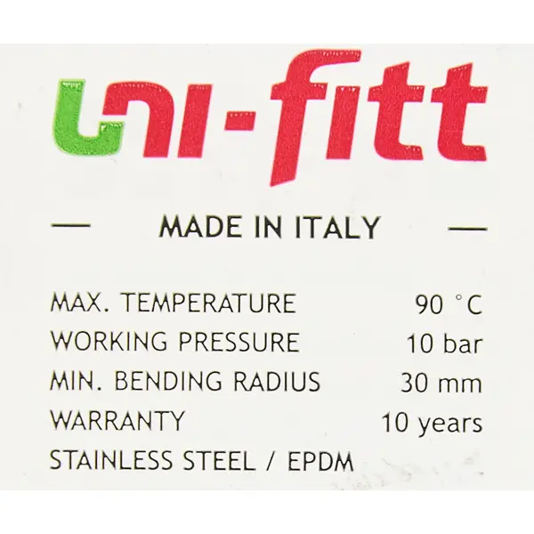 **Гибкая подводка для воды UNI-FITT ВВ** используется для соединения сантехники с трубопроводами. Применима для подключения насосов, гидрофобных блоков, уравнительных резервуаров и другого оборудования. Внутренняя трубка шланга изготовлена из гибкого и прочного материала на основе каучука, поверхность — из переплетенных особым образом стальных нитей. Концевая арматура — из латуни. ### Особенности: