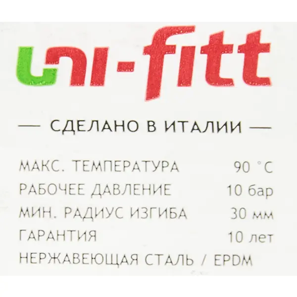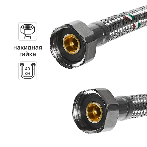 **Гибкая подводка для воды UNI-FITT ВВ** используется для соединения сантехники с трубопроводами. Применима для подключения насосов, гидрофобных блоков, уравнительных резервуаров и другого оборудования. Внутренняя трубка шланга изготовлена из гибкого и прочного материала на основе каучука, поверхность — из переплетенных особым образом стальных нитей. Концевая арматура — из латуни. ### Особенности: - диаметр соединения — 1/2; - длина — 40 см; - тип — гибкая.