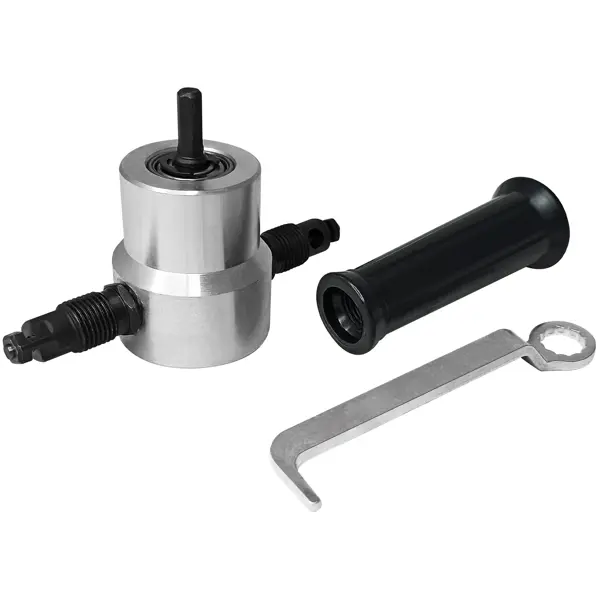 **Насадка на дрель Vertextools** используется для резки листового металла. Позволяет сформировать ровную кромку, не крошит деталь. Рабочая часть поворачивается на 360°, что обеспечивает удобство эксплуатации. Подходит для совместной работы с электрической или аккумуляторной дрелью с подходящей формой паза под шестигранный хвостовик диаметром 180 мм. Защита от включения без воды отсутствует. ### Особенности: - материал изготовления — сталь, не подверженная деформации и коррозии; - длина биты составляет 25 мм; - в товарной упаковке поставляются 2 штуки.