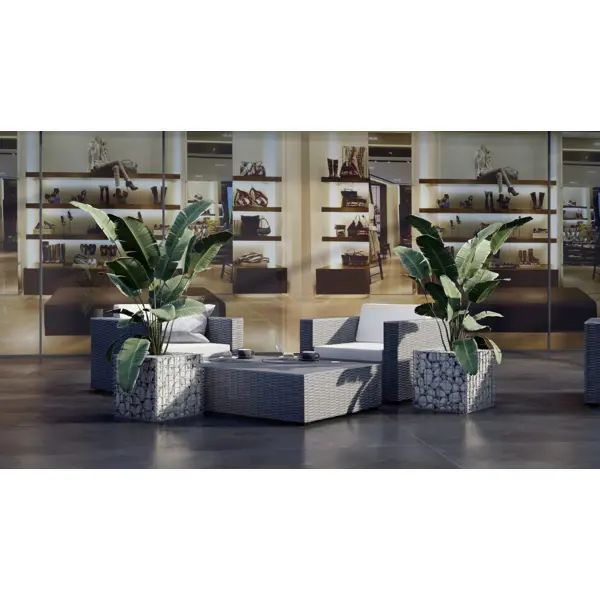 **Габион-кашпо** — современное решение для эко композиций, состоящее из объемного сетчатого каркаса, природного камня (или эрклеза), посаженного в отдельную емкость декоративного растения. Форму можно установить в интерьере или сделать частью ландшафта, скомпоновать с габионами другого размера. Углеродистая металлическая проволока сохраняет первоначальный вид в течение всего срока эксплуатации (не менее 10 лет). Во время зимовки растения наполнитель сетки поддерживает оригинальность конструкции. ### Особенности: - размер сварной конструкции — 400 х 400 х 400 мм (длина/ширина/высота); - материал каркаса — оцинкованная сталь; - размер ячеек: 50 х 50 мм; - диаметр проволоки — 3,8 мм; - цвет — серый; - фракция наполнителей — от 50-70 до 120-170; - комплектация — карты сварки, стяжки, крепления (болты/клипсы).