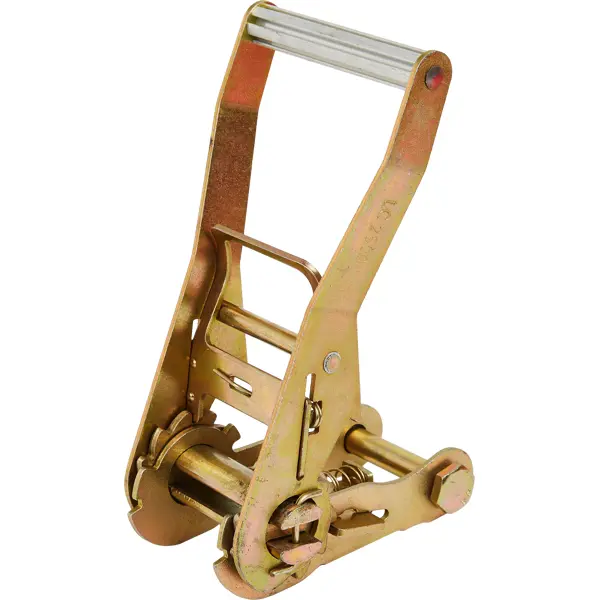 **Храповой механизм для ремня** предназначен для регулирования и затягивания ленты. Его конструкция включает в себя защелку, которая сделана в виде рычага и зубца. Механизм используют в разных сферах жизнедеятельности при транспортировке грузов, в том числе нетиповых и тяжелых. Он гарантирует безопасное и прочное крепление. Отстегивает легко и быстро — достаточно повернуть рычаг в обратную сторону и высвободить защелку. ### Особенности: