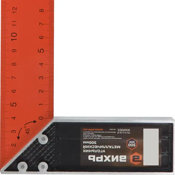 **Угольник Вихрь** обеспечивает точность измерений длины или угла в 45° или 90°. Применяется для нанесения разметки на поверхность детали. На лицевую сторону корпуса нанесена двухсторонняя шкала. ### Особенности: