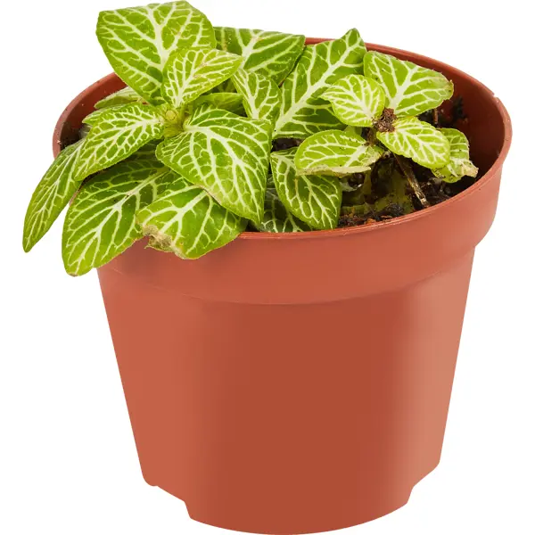 **Фиттония микс** — комнатное многолетнее растение. Отличается небольшим листьями овальной формы с волнистым краем. Цвет — зеленый, прожилки — розовые или серебристые. Подходит для выращивания в полутени в горшках или флорариумах. ### Особенности: - высота — 15 см; - полив предпочитает умеренный; - опрыскивание проводят ежедневно; - рекомендуется регулярно протирать листочки от пыли; - для подкормки используют минеральные удобрения. **Важно:** товар может поставляться в ассортименте без возможности выбора при заказе в интернет-магазине.