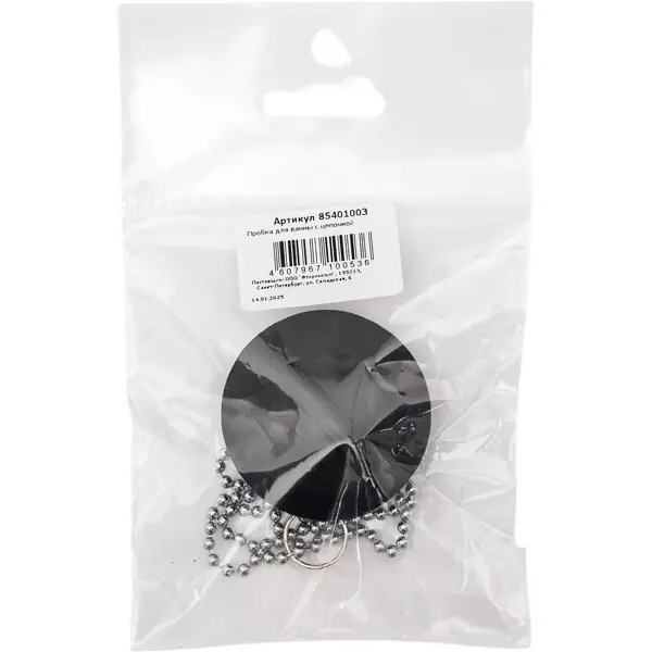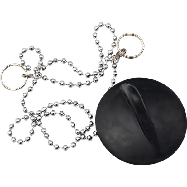 **Пробка с цепочкой для ванны** предназначена для закупоривания слива. Надежно удерживает воду. Основной материал — резина. Цепочка изготовлена из металла. ### Особенности: