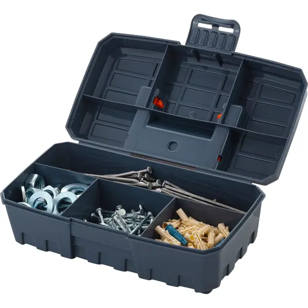 **Органайзер для крепежа Blocker Techniker** подойдет для эксплуатации в быту, гараже или мастерской. Может использоваться для размещения принадлежностей для шитья, рыболовства, рукоделия. Позволяет компактно хранить и транспортировать метизы, мелкий инструмент. Внутри располагаются четыре отсека. Складная ручка упрощает переноску бокса с одного места на другое. Крышка закрывается на защелку, не позволяет изделиям рассыпаться при переворачивании. ### Особенности: