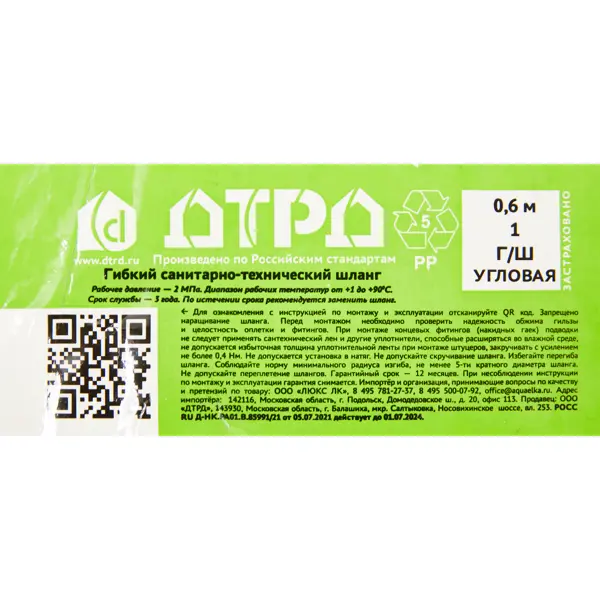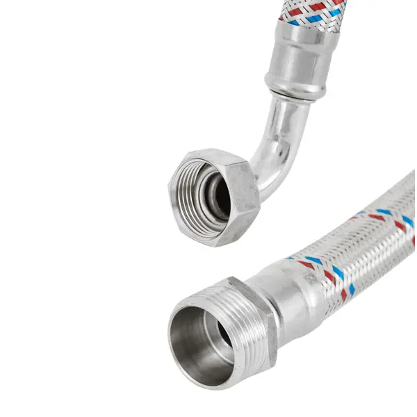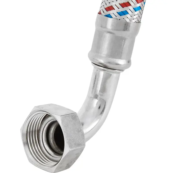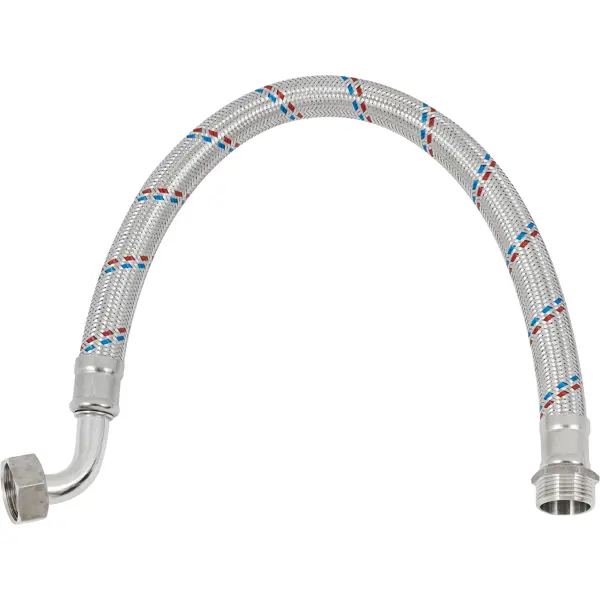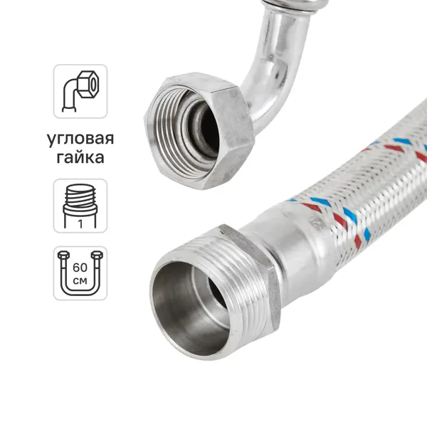 **Гибкая подводка для воды ДТРД** предназначена для подключения смесителей к трубопроводу под углом. Оплетка состоит из волокон, изготовленных из нержавеющей стали. Внутренний шланг — из нетоксичной резины. ### Особенности: - диаметр соединения — 1"; - оснащена внутренней и наружной резьбой; - длина — 60 см.
