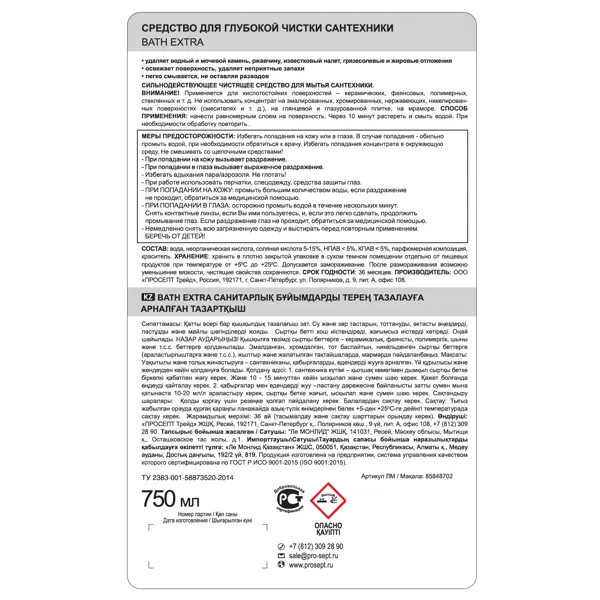 | Инструкция по применению | Уход за сантехникой Нанести равномерным слоем на поверхность с помощью щетки или салфетки. Через 10 мин смыть водой. При необходимости обработку повторить. Мытье стен и полов Развести водой из расчета 1–5 мл/л, в зависимости от степени загрязнения. Нанести |