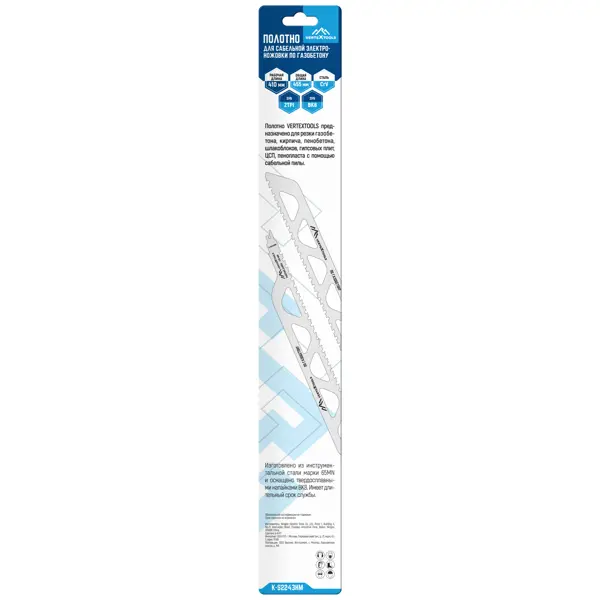 **Пилка для сабельной пилы Vertextools K-S2243HM** предназначена для работ по различным материалам. Благодаря прочному покрытию снижается сила трения, что значительно снижает истирание, сохраняя остроту зубьев и скорость реза. Благодаря большому шагу между зубьями полотно быстрее и глубже врезается в материал. ### Особенности: - совместима с бензиновыми, аккумуляторными и электрическими пилами производителя; - рассчитана на работу с материалами большого диаметра; - длина — 455 мм.