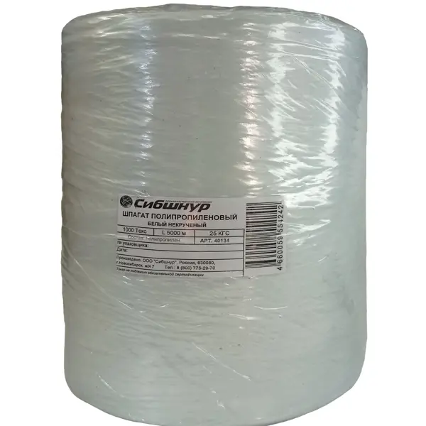 Шпагат полипропилен 1000 некрученый 5000 м, цвет белый