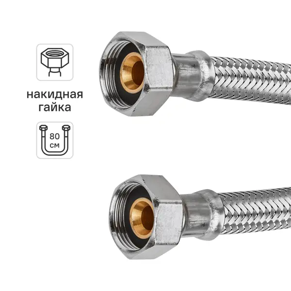 **Гибкая подводка Uni-Fitt** предназначена для подключения смесителей к трубопроводу. Оплетка состоит из волокон, изготовленных из нержавеющей стали. Внутренний шланг — из нетоксичной резины. ### Особенности: - диаметр соединения — 3/4"; - оснащена внутренней резьбой; - длина — 80 см.