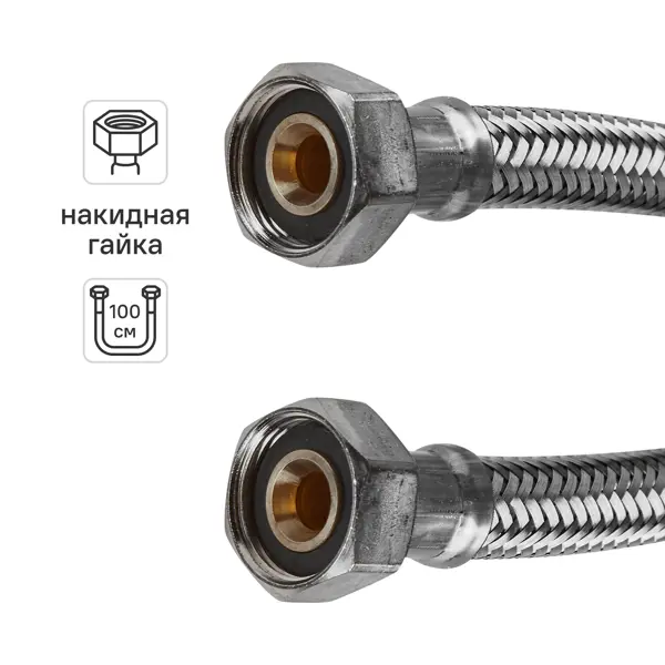 **Гибкая подводка Uni-Fitt** предназначена для подключения смесителей к трубопроводу. Оплетка состоит из волокон, изготовленных из нержавеющей стали. Внутренний шланг — из нетоксичной резины. ### Особенности: - диаметр соединения — 3/4"; - оснащена внутренней резьбой; - длина — 100 см.