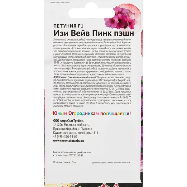 | Тип продукта | Семена цветов |