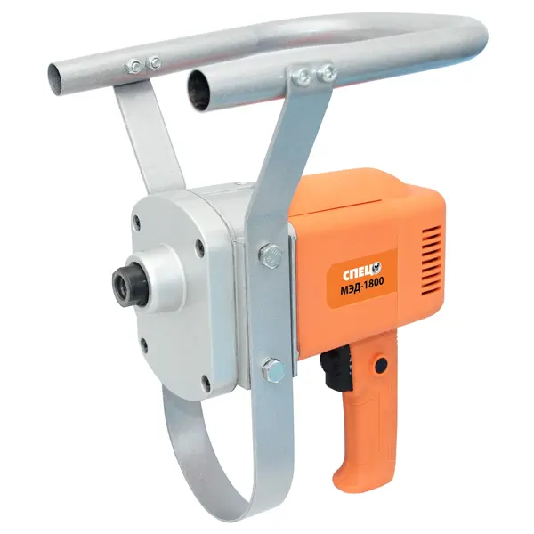 **Строительный миксер Спец МЭД-1800** предназначен для перемешивания красок, клеев, герметиков, лаков, штукатурки, строительных растворов и смесей. ### Преимущества: - Эргономичная съёмная рукоятка обеспечивает высокий уровень удобства работы с инструментом; - Регулировка числа оборотов позволяет подобрать оптимальный рабочий режим в зависимости от свойств материала; - Блокировка кнопки включения освобождает от необходимости всё время удерживать её нажатой.