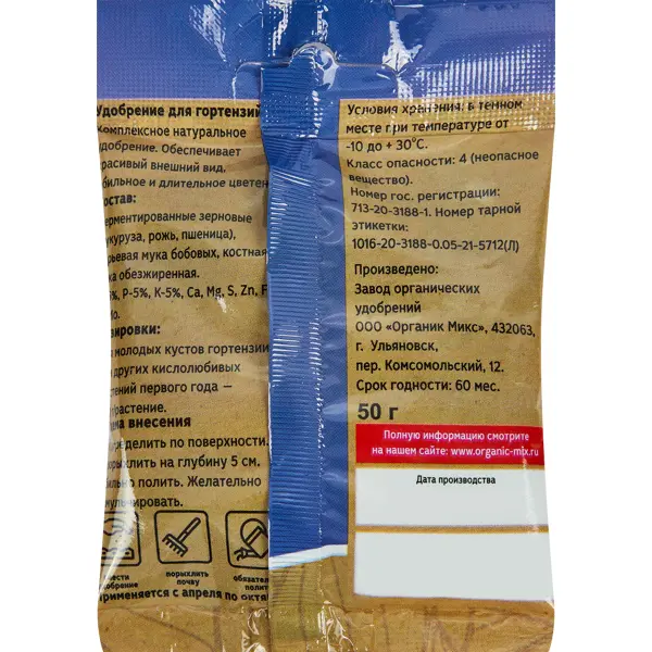 | Вид удобрения | Органический |