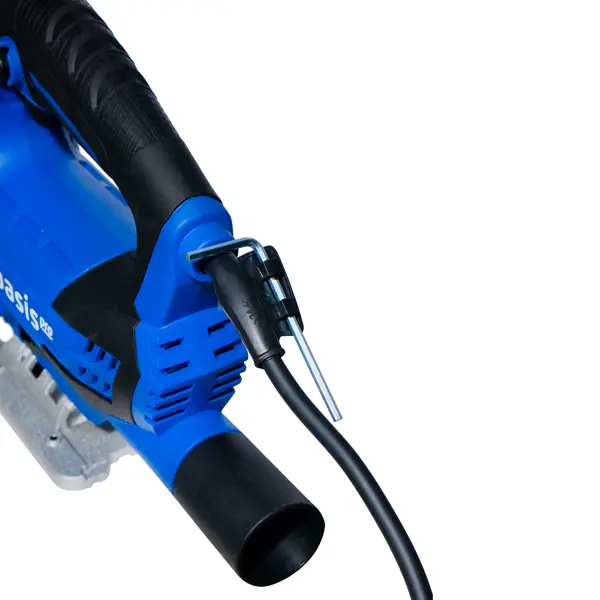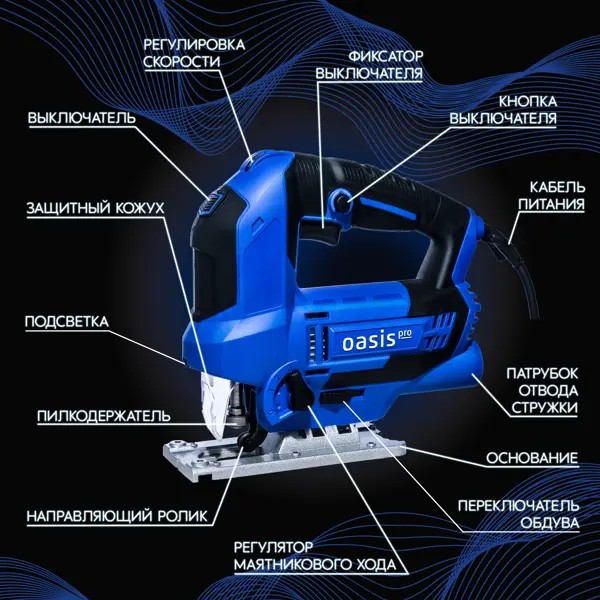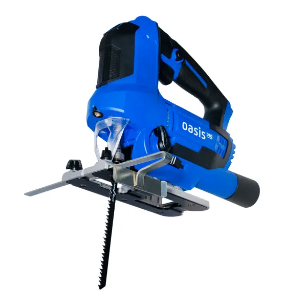 **Электрический лобзик Oasis LE-100 Pro** – инструмент для быстрого и аккуратного выполнения задач по резке дерева, металла и других материалов. Устройство идеально подходит для домашних мастерских, ремонта мебели или творческих проектов. **Подойдёт для любых задач** Мощность 1000 Вт обеспечивает скорость хода пильного полотна до 3000 об/мин. Глубина реза достигает 100 мм в дереве и 12 мм в стали. Угол наклона до 45° позволяет делать фигурные и сложные резы. Маятниковый ход повышает эффективность реза, автоматически регулируя движение полотна для ускорения работы с мягкими материалами, такими как дерево или пластик. Электронный блок управления позволяет регулировать скорость хода пильного полотна. Лазерный указатель значительно повышает точность резов. **Удобство в работе** Компактные габариты позволяют легко маневрировать при работе в труднодоступных зонах. Т-образный хвостовик пилки гарантирует совместимость с большинством стандартных полотен. Фиксатор выключателя позволяет зафикс