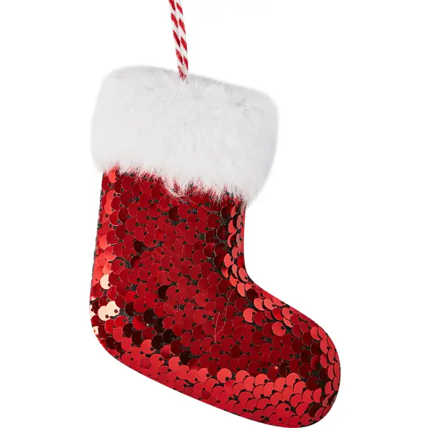 **Елочная игрушка Носок** размером 8х10 см станет выразительным элементом сказочного наряда елки. Фигурка органично впишется в общий ансамбль, подчеркнет цветовую гамму оформления и выбранный стиль. Изготовлено из красного полиэстера. ### Подсказки по украшению елки: - На большом дереве лучше смотрятся крупные украшения, на компактной елочке — миниатюрные. - Можно выбрать один из способов расположения игрушек: хаотичный, спиральный, круговой, в шахматном порядке, с размещением по продольным линиям. - Основной тон цветовой гаммы задают именно крупные украшения — объемные шары, банты, звезды, — маленькие же дополняют общую картину. - Прекрасно, если цветовая схема елки будет сочетаться и перекликаться с остальным декором в комнате — гирляндами на окнах и стенах, рождественскими венками, — а также с тонами самого интерьера. - Легко бьющиеся и ломающиеся игрушки стоит повесить ближе к стволу, прочные можно разместить на концах ветвей. Так вы убережете хрупкие украшения от неприятностей,