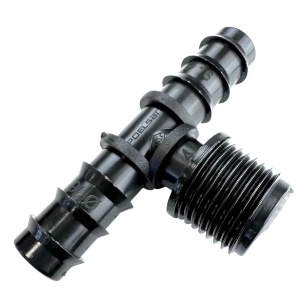 **Тройник для ПНД трубки** применяется для организации системы полива на дачном или приусадебном участке, на территории многоквартирного дома. Позволяет присоединить два участка капельной и / или магистральной трубки 16 мм к источнику воды или другому фитингу с внутренним диаметром 1/2 дюйма. Елочка на концах фитинга обеспечивает прочное соединение. Тройник выполнен из высокопрочных материалов, не подвержен влиянию ультрафиолета, имеет длительный срок эксплуатации. ### Особенности: - присоединительный размер - 1/2 дюйма; - диаметр трубки составляет 16 мм; - тип резьбы - наружная.