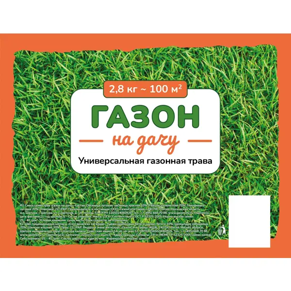 **Семена газона ГазонCity Газон на дачу** предназначены для высева на дачном участке, территории загородного дома, парка, сквера. Отличается быстрой всхожестью и неприхотливостью. Одной пачки хватает на посев на площади 105 м². ### Особенности: - вес товарной упаковки — 2,8 кг; - состав — райграс однолетний, райграс пастбищный, овсяница луговая, тимофеевка луговая, овсяница тростниковая.