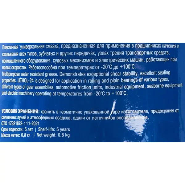 **Смазка универсальная Титан-СМ Sintec Литол-24** предназначена для обработки поверхностей в судовых механизмах, электрических машинах. Обеспечивает плавность движения деталей, снижает трение и минимизирует износ, возникающий в процессе эксплуатации. Смазка сохраняет работоспособность при температурах от -20°C до 110°C. Перед нанесением основание следует очистить от мусора. Хранить состав следует вдали от источников огня и попадания прямых солнечных лучей. ### Особенности: - упаковка — пластиковая емкость с герметично закручивающейся крышкой; - вес составляет 800 г.