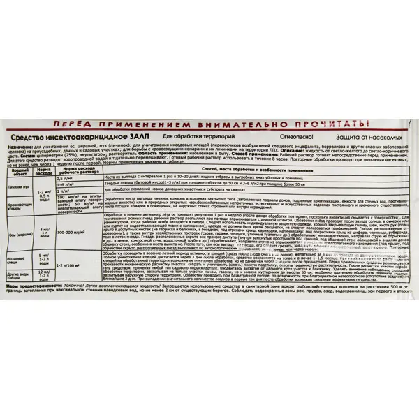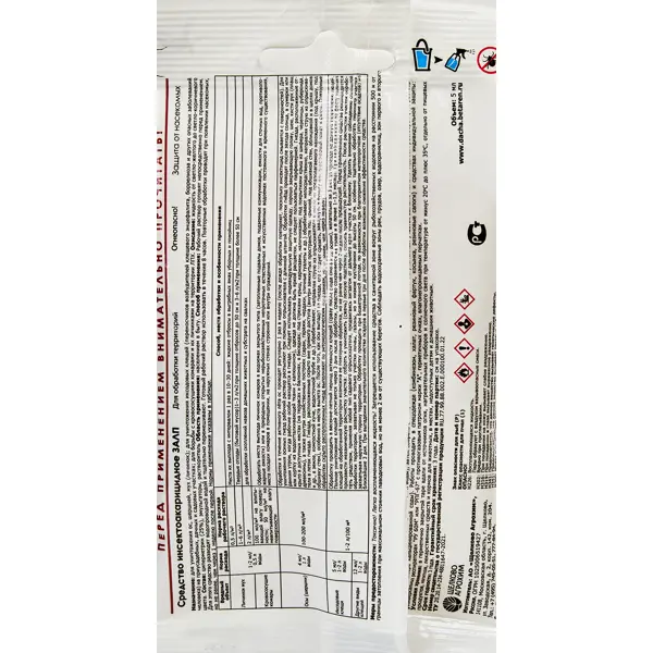**Инсектицид Залп** предназначен для защиты от вредителей. Принцип действия основан на негативном влиянии на нервную систему насекомых, которые теряют способность передвигаться, а затем гибнут. Устойчив к воздействию солнечного излучения и повышенных температур. ### Особенности: - разводится с водой в пропорции, указанной в инструкции производителя; - в пачке находится 5 мл вещества.