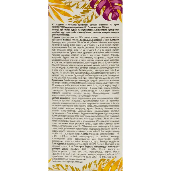 **Инсектицид Help** предназначен для защиты от комаров. Используется на улице, действует уже через полчаса после обработки участка. Данного количества концентрата, разведенного с водой, хватает на 50 соток. После выпадения осадков требуется повторная обработка. Эффективен также против ос, шершней, муравьев. Если использовать в помещении, то хорошо борется с клещами, тараканами, блохами. ### Особенности: