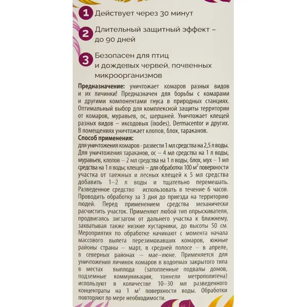 | Способ действия | Контактный (вещество с шокирующим эффектом, которое воздействует непосредственно на паразитов) |